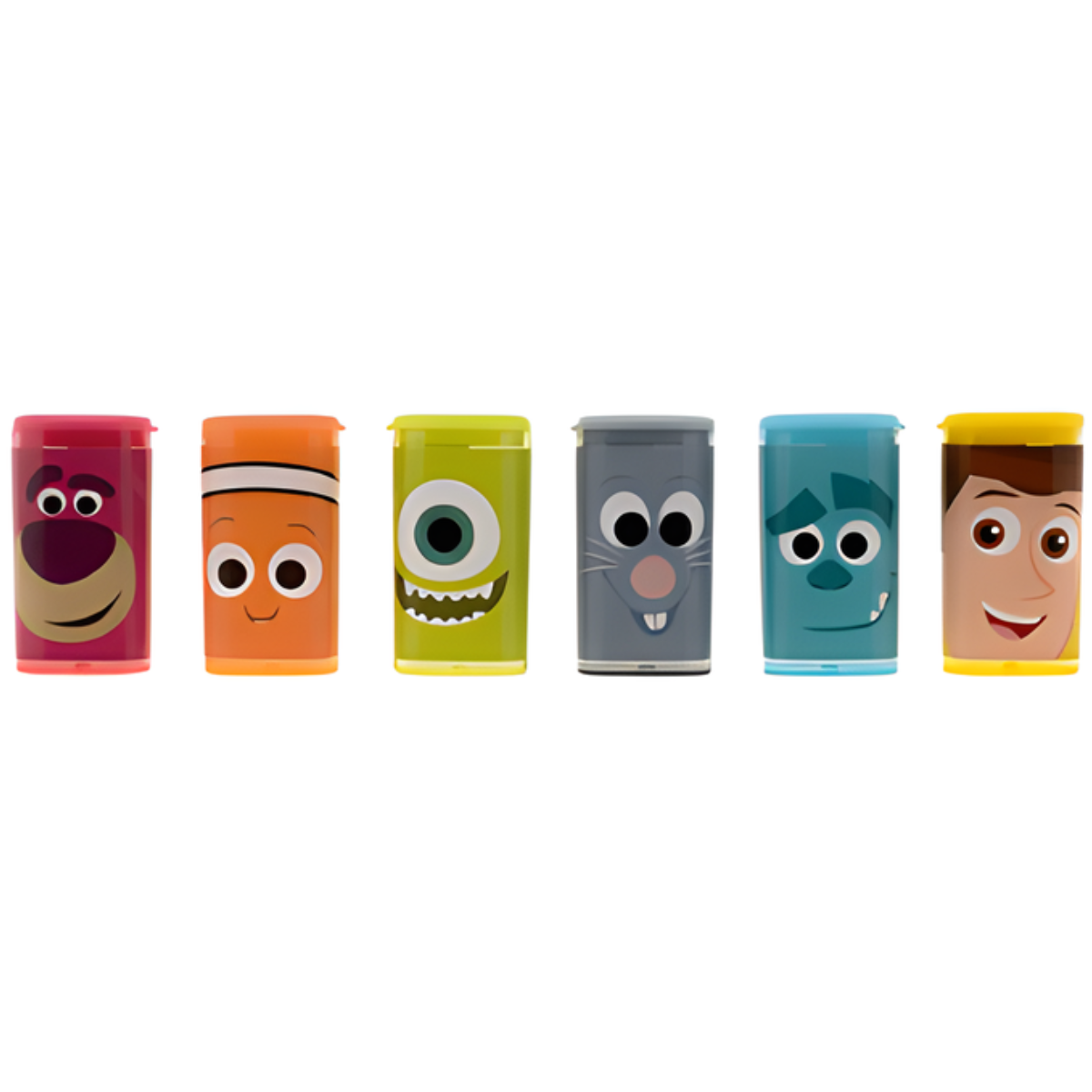 Apontador C/Depósito Pixar da Molin,com ilustrações dos personagens mais icônico do mundo das animações da pixar,ideal para sua rotina escolar sendo prático e durabilidade durante o uso.