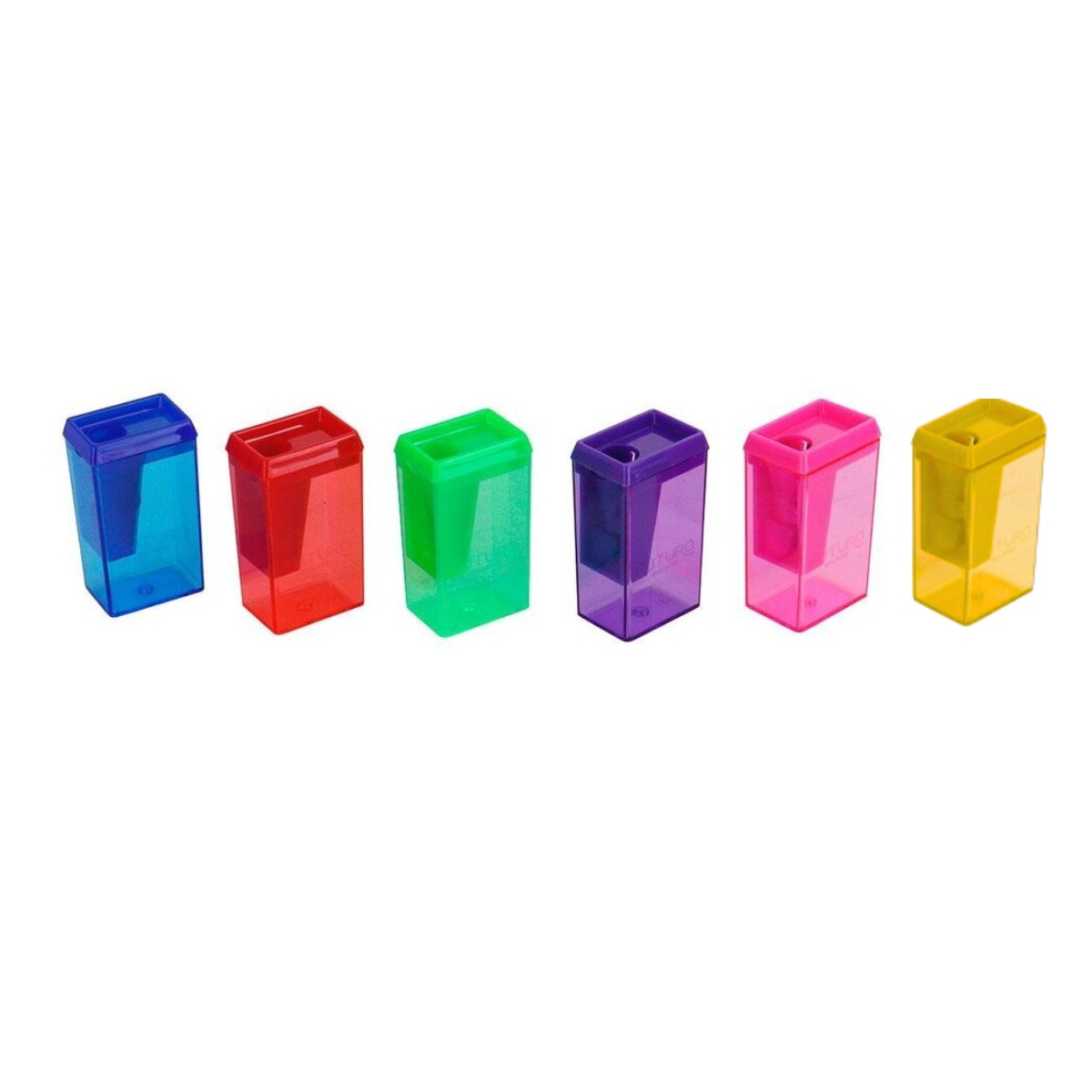 Apontador C/Depósito Retangular Colorido Futuro, Prático e leve para sua rotina escolar ou trabalho com lâminas de alta qualidade e resistente durante o uso.