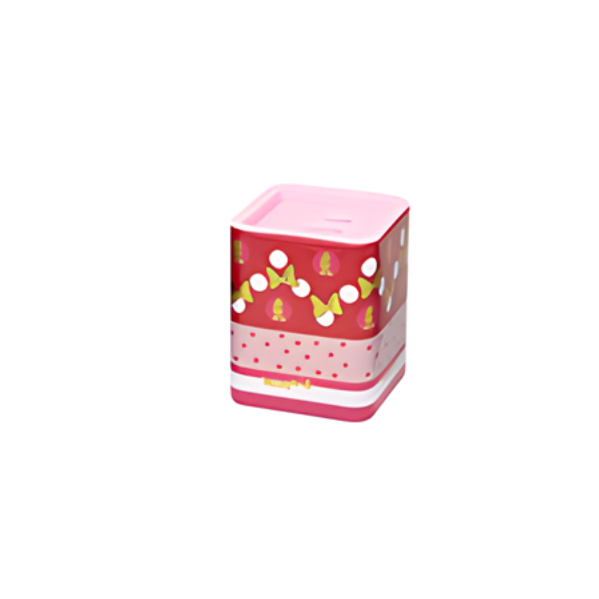 Apontador C/Depósito Quadrado Metálico Minnie Mouse  da Molin, prático e resistente com aponta do lápis normal e jumbo,ideal para o dia a dia escolares com um estilo encantador da nossa querida Minnie Mouse.