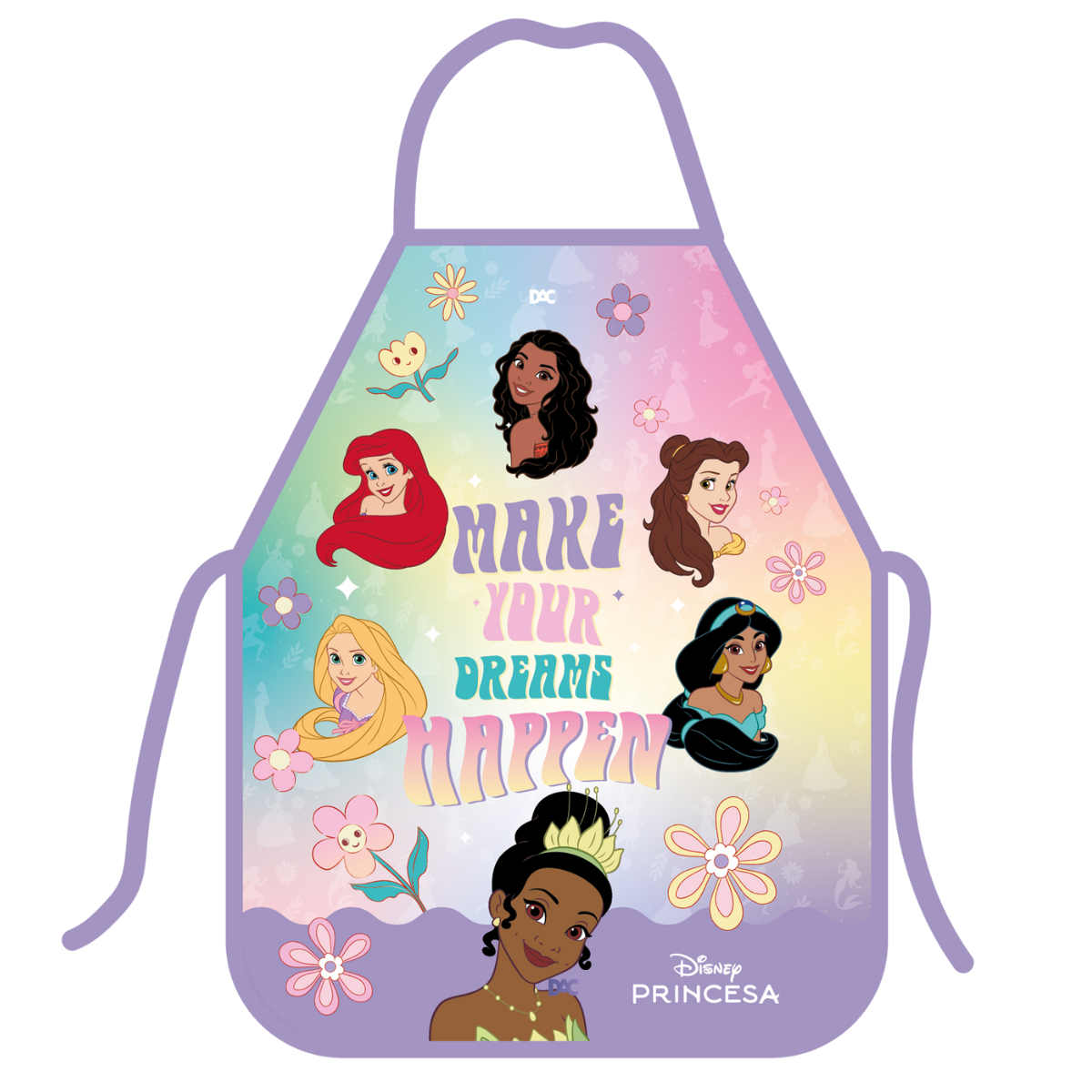 Avental infantil ideal para proteger o uniforme escolar nas aulas de artes. Perfeito para crianças se divertirem com tinta, cola e pintura sem sujar a roupa.Sendo ideal para expressar suas artes sem bagunça,especialmente um designer das princesas icônicas do mundo da Disney!