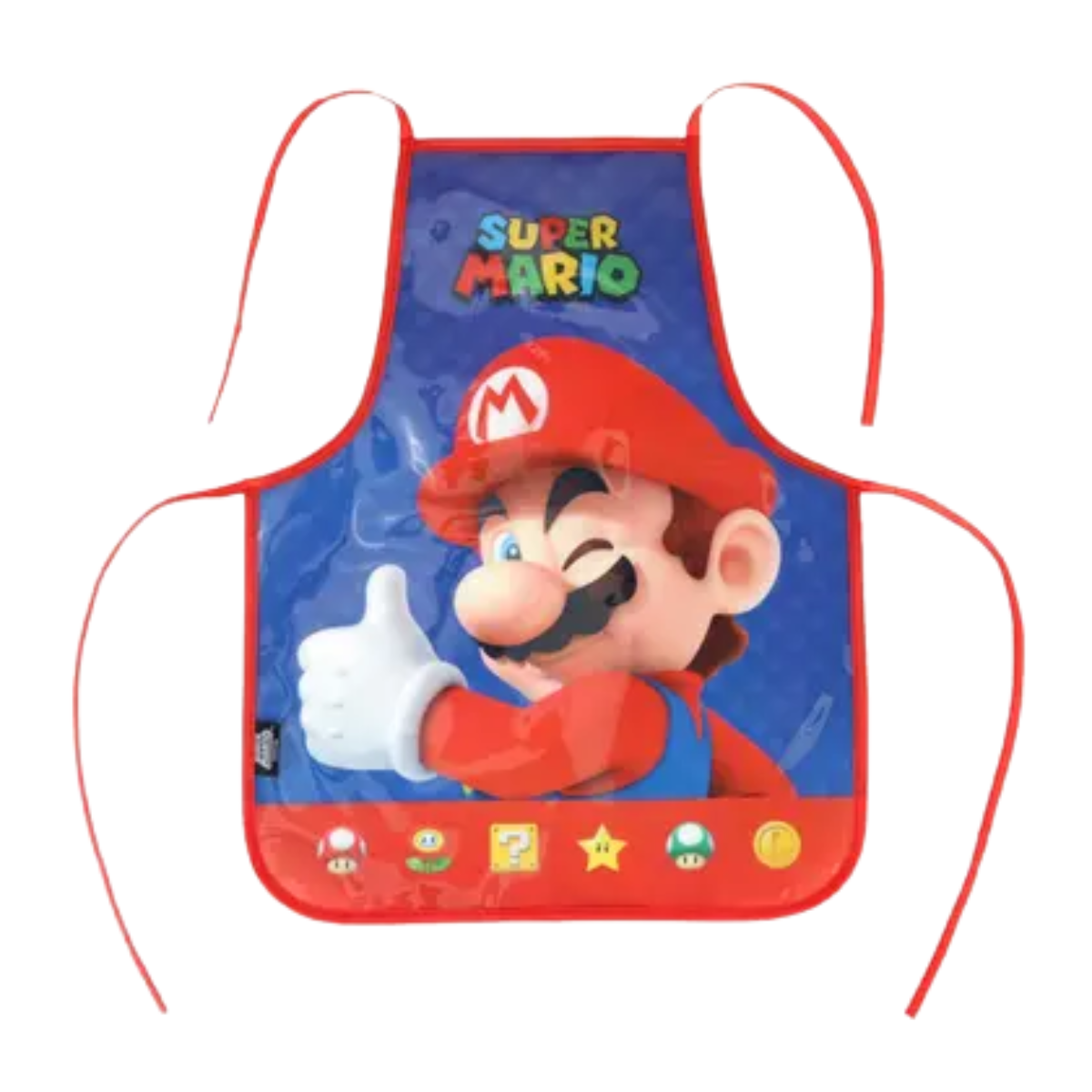 Aproveite sua diversão com as cores sem se preocupar com bagunça nas roupas! com o Avental Infantil Super Mario Maxlog,sendo perfeito para quem adora o icônico do mundo dos video games Nintendo! além de ser resistente e durabilidade,ideal para os pequenos terem suas atividades artísiticas com muita diverão!