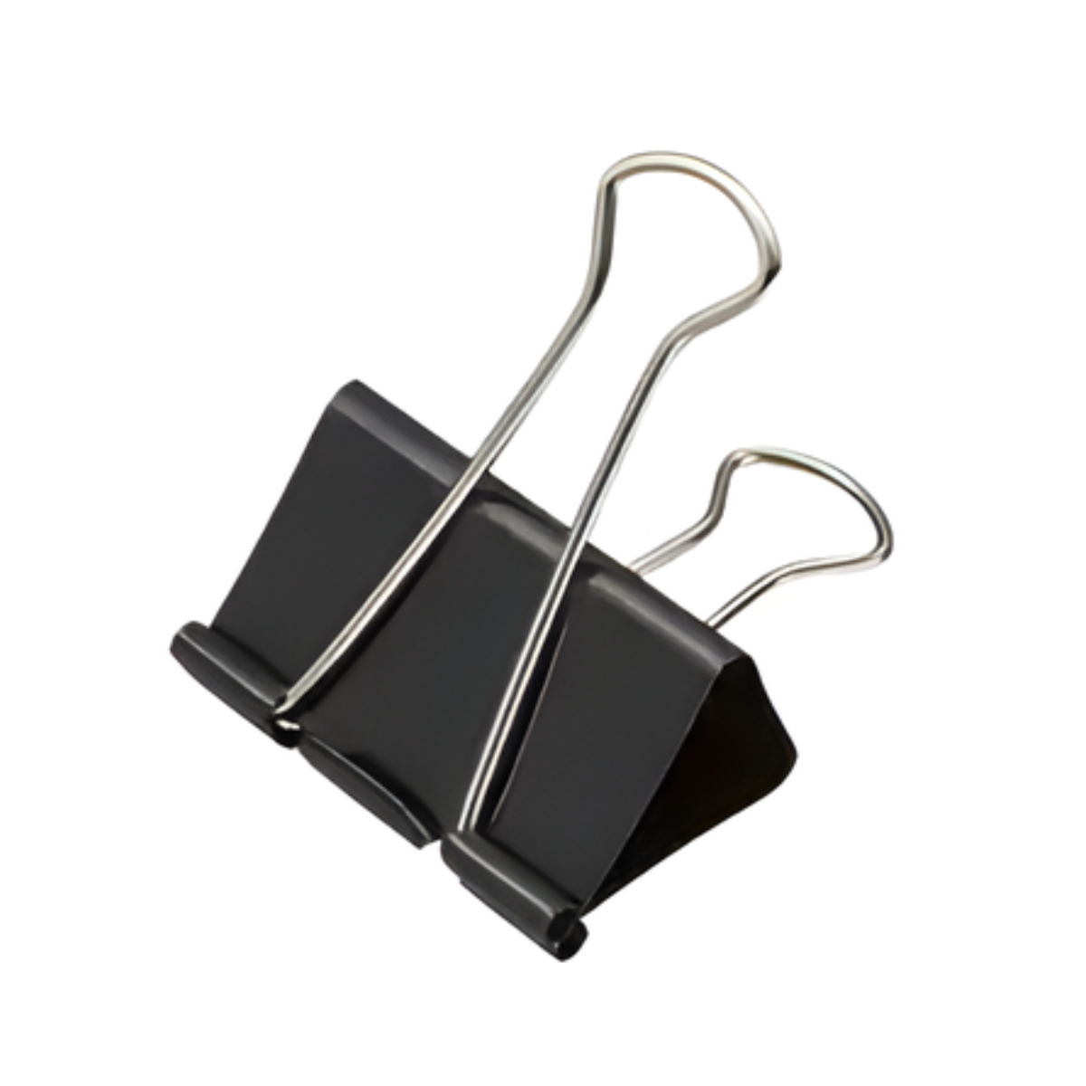 Corpo de metal resistente com pintura epóxi na cor preta e presilha em aço inoxidável. Alta qualidade e durabilidade. É possível prender folhas sem amassar, danificar suas superfícies ou deixar marcas e ranhuras. Pode ser utilizado para identificação e organização de arquivos, ordenação de elementos nos cômodos de casa e para fixar fotos e recados em murais. Binder Clip
