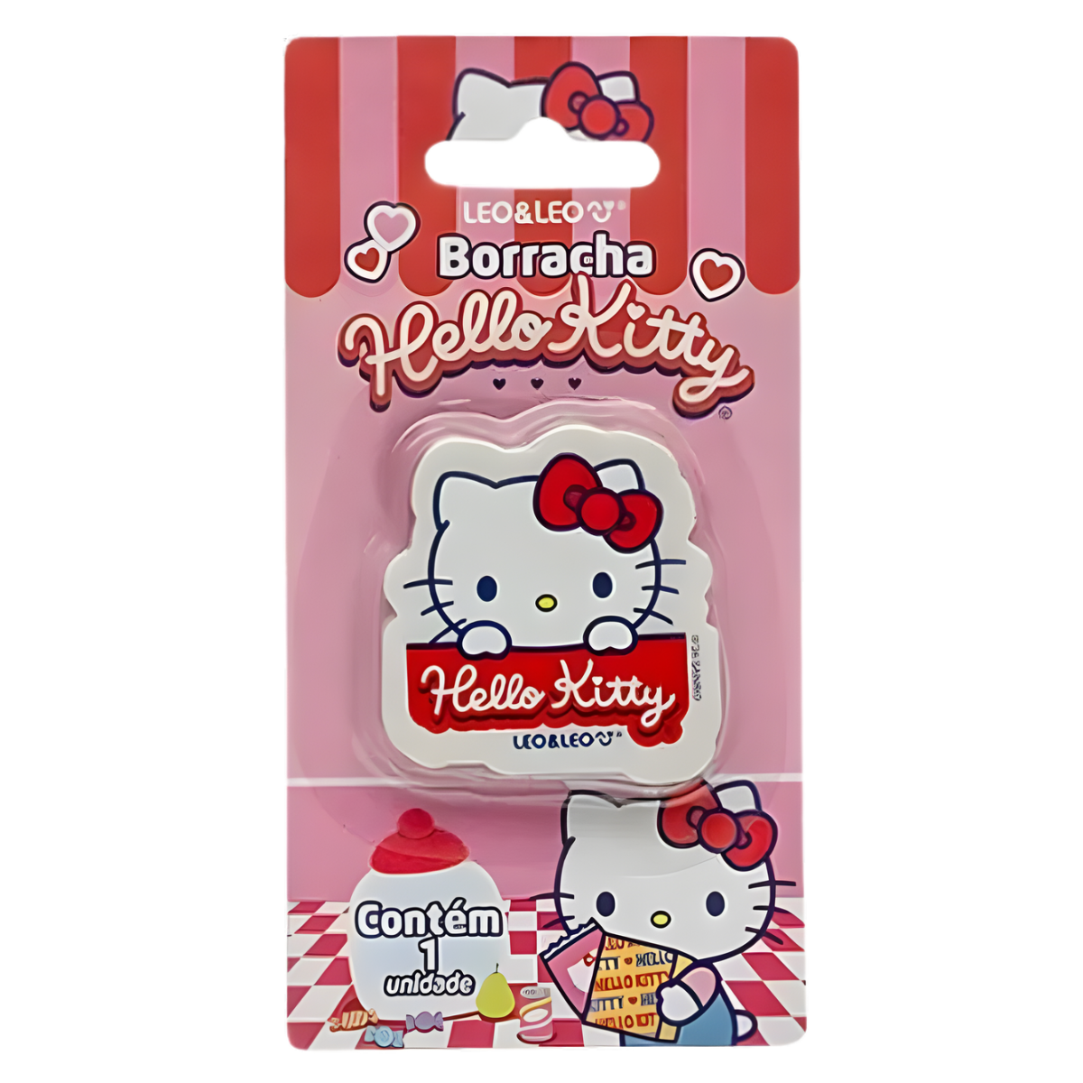 Apague seus erros com muita fofura! com a Borracha Hello Kitty Leo Leo, sendo perfeita para quem adora a gatinha icônica com sua personalidade vibrante e delicadeza, que será sua acompanheira durante sua rotina escolar de um jeito único e especial!