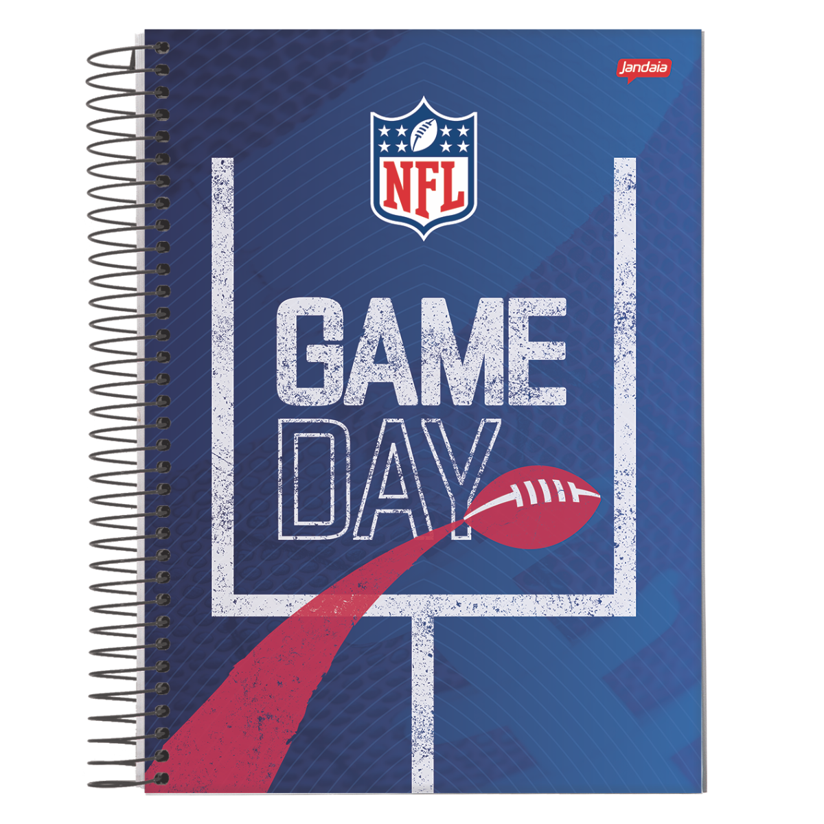 Caderno Espiral Capa dura 10MAt/160fls NFL da Jandaia,com um designer ideal para quem adora o famoso futebol amerido! cheios de detalhes na capa do esporte! sendo perfeito para sua rotina escolar,faculdade ou uso pessoal!