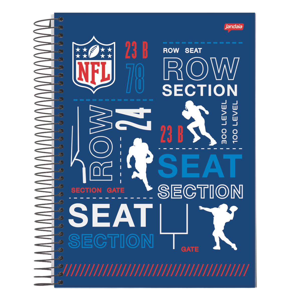 Caderno Espiral Capa dura 10MAt/160fls NFL da Jandaia,com um designer ideal para quem adora o famoso futebol amerido! cheios de detalhes na capa do esporte! sendo perfeito para sua rotina escolar,faculdade ou uso pessoal!