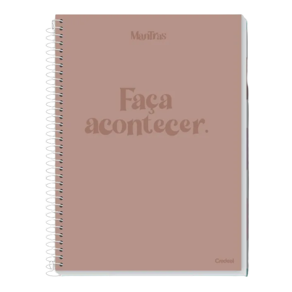 Caderno Espiral Capa dura Mantras 10Mat/160fls da Credeal,com um designer moderno e frases motivacionais, uma ótima escolha para seus organizações no estudos com palavras de inspiração para começar o dia a dia!