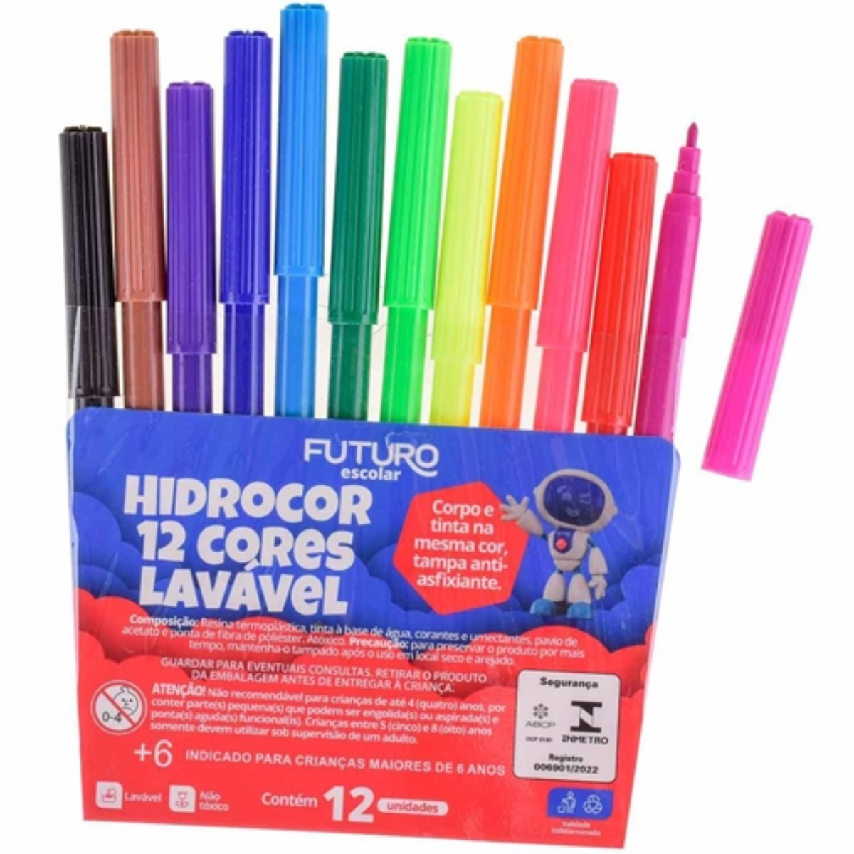 Canetinha Hidrocor 12 Cores Lavável da Futuro,perfeito para atividades artísticas com cores vibrante! ideal para explorar sua imaginação e criatividade,com muita diverão!