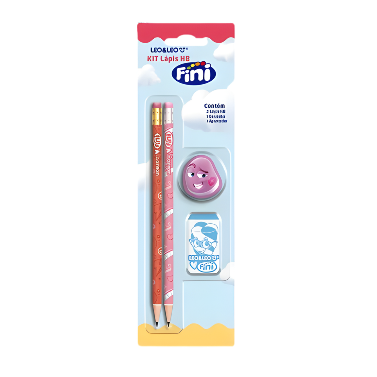Tenha um estudos mais divertidos! com o Kit Lápis Preto+Borrcha+Apontador Fini LeoLeo, com estampas icônicas da marca fini, que traz um jeito divertido e diferente na sua rotina escolar!