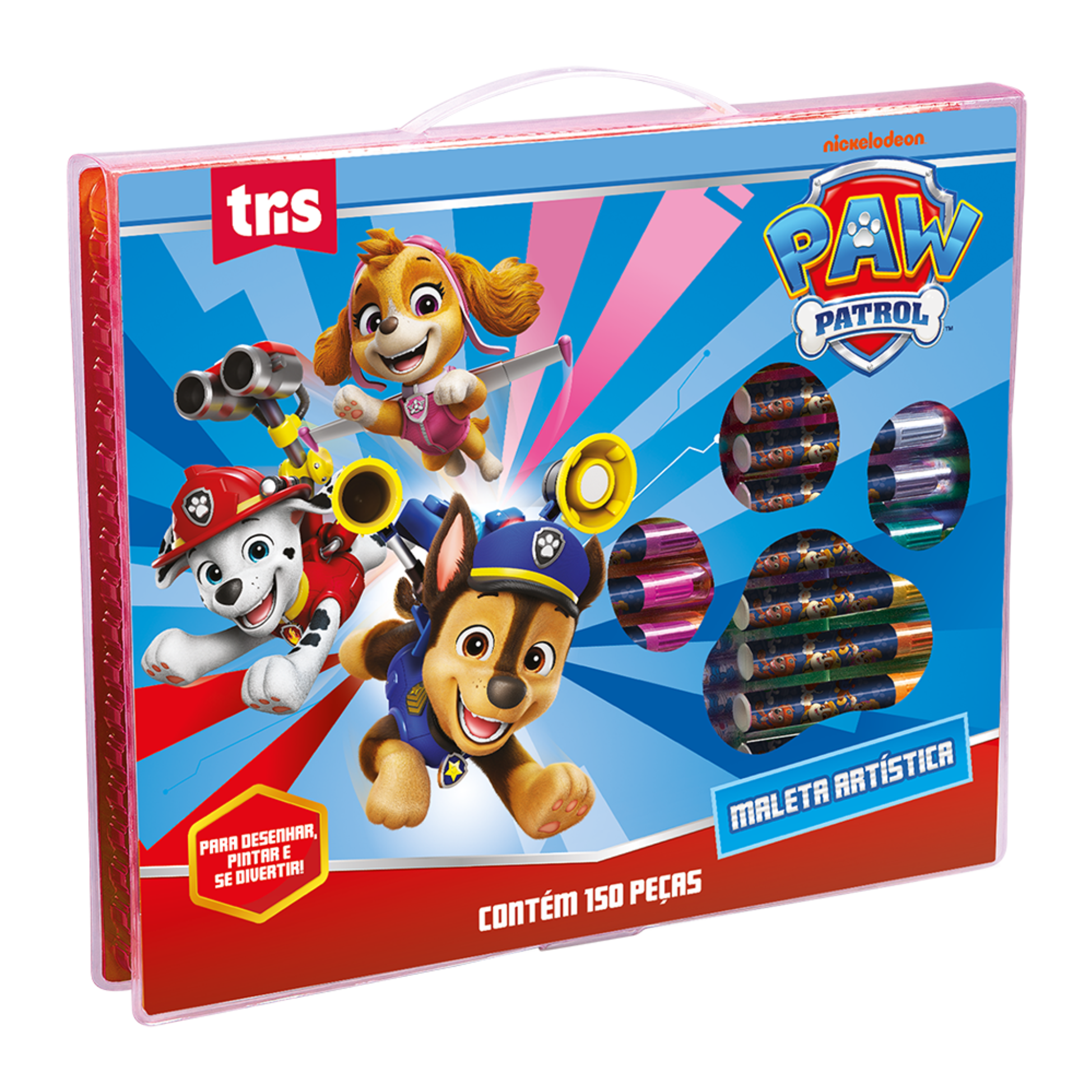 Maleta Artística 150 Peças Patrulha Canina da Tris,Perfeito para os pequenos explorar sua criatividade com muitas cores e diversão!