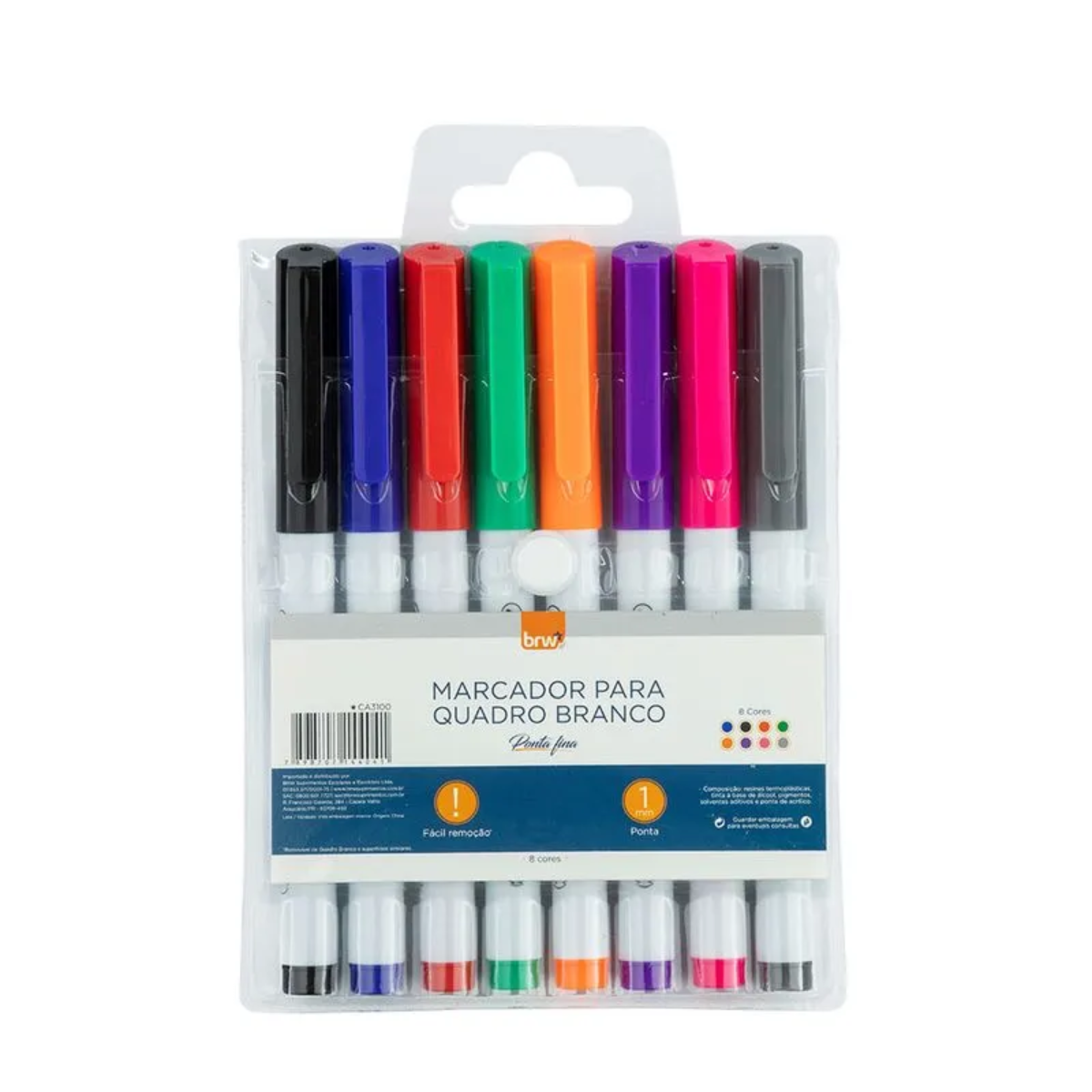 Ponta fina redonda de acrílico 1 mm resistente e durável, que não resseca e proporciona escrita confortável e macia. Kit econômico com cores vivas e sortidas. Facilmente apagável em quadros brancos, metais plásticos e vidros. Não deixa resíduos ou marcas da caneta. Ideal para salas de aula, reuniões corporativas e treinamentos. Marcador Quadro Branco