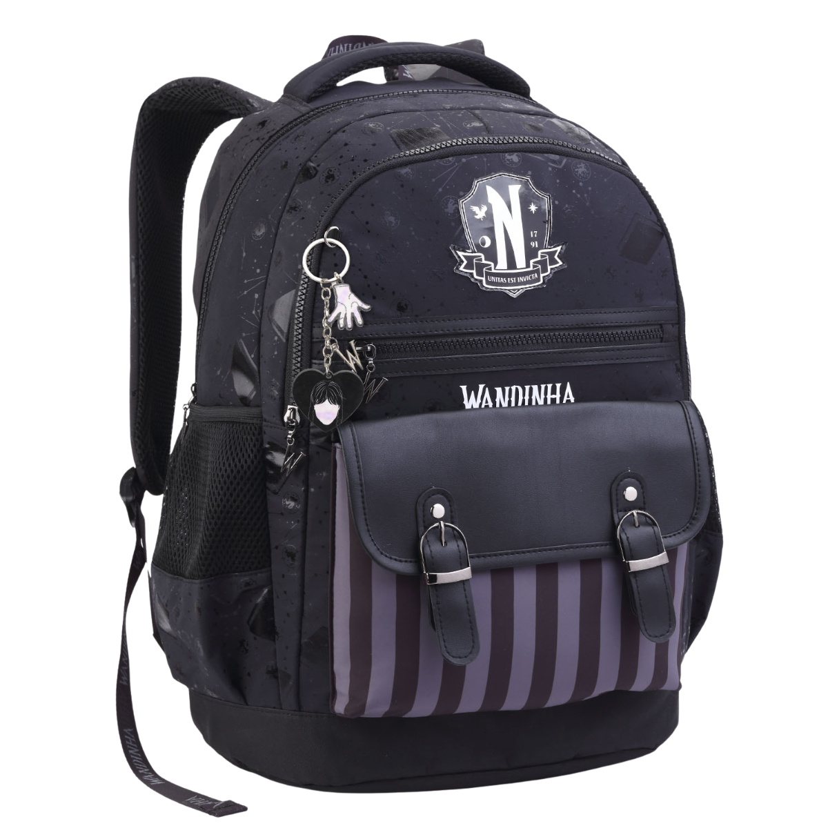Ideal para quem busca algo diferente para um começo escolar com estilo dark e sombrio..essa Mochila de Costas Wandinha Preto MJ43797 Seanite, sendo perfeito para quem adora a personagem icônica do mundo cinematográfico e das animações com sua presença cativante e estilo gótico com personalidade com cada detalhe que traz a enssência da personagem.É uma ótima escolha para quem deseja estilo e compartimentos espaçosos, sendo de alta qualidade e e durabilidade durante o dia a dia, garantindo conforto e funcional para sua rotina escolar!