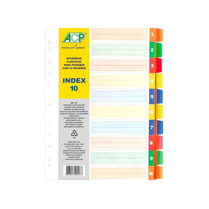 Divisórias De Fichário Coloridas Plásticas 10UNI Index10 ACP