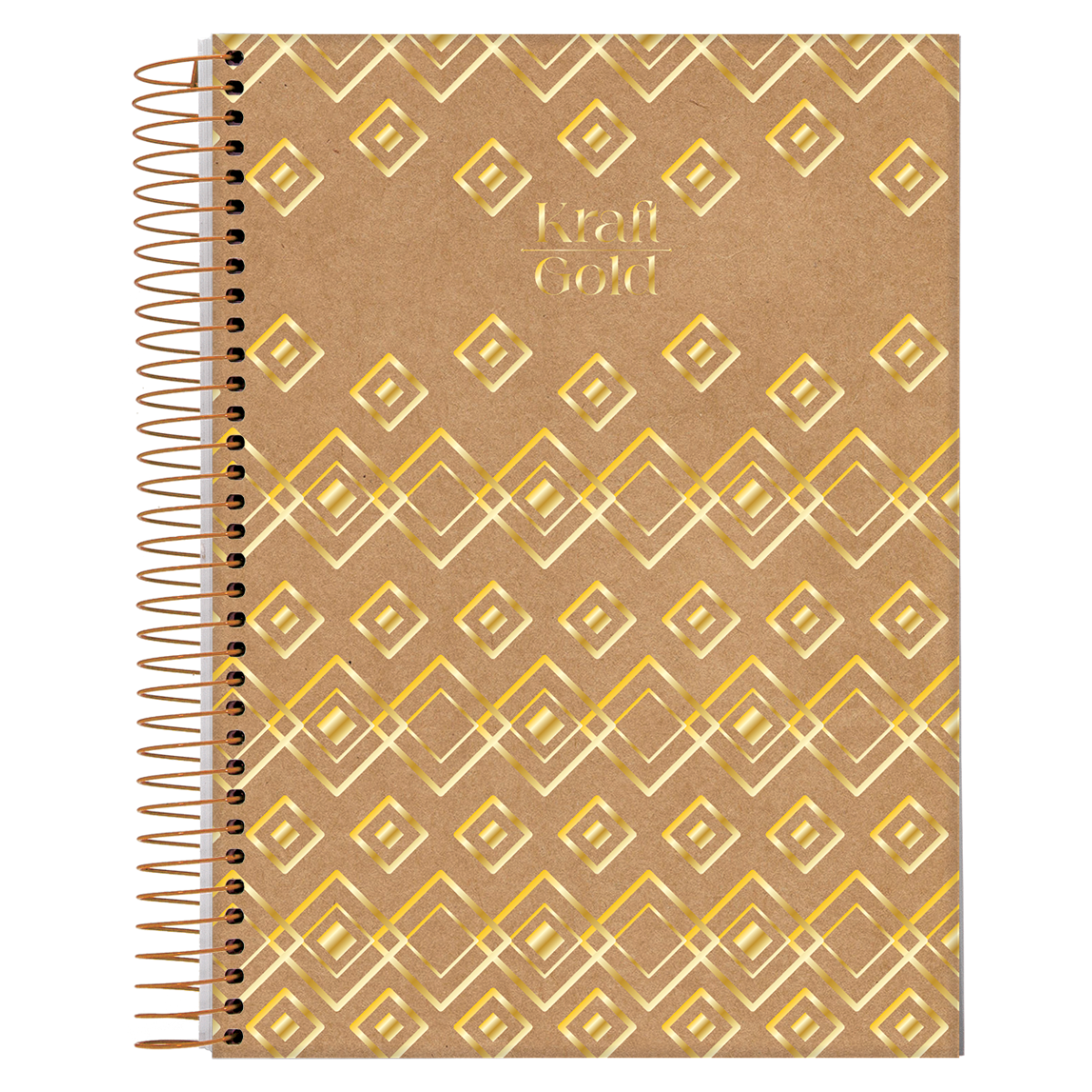 Caderno Espiral Cd 1/4 10Mat/160fls Kraft Gold da Jandaia,com um designer elegante e sofisticado,detalhes delicados de dourados.Além disso,fundindo a preocupação pelo meio ambiente e estética harmosa.Perfeito para estudantes,profissionais ou uso pessoal.