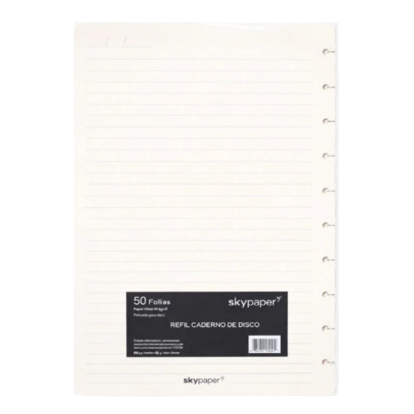 Refil de Caderno Disco Colegial 50 folhas Skypaper, oferece organização e praticidade durante sua rotina escolar,tabalho ou uso pessoal, com folha pautada facilitando a escrita e papel offset 80gr, formato 175X240mm. Ideal para quem busca personalizar seu caderno disco do seu jeito!