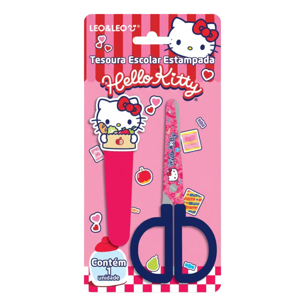 Corte seus pápeis de um jeitinho fofo e delicado com a gatinha encantadora e icônica! com a Tesoura Escolar Hello Kitty C/Capa Protetora Leo Leo, cheio de fofura e personalidade na hora do corte! sendo especial para quem adora a personagem cativante,que irá te acompanhar na sua rotina diária escolar.